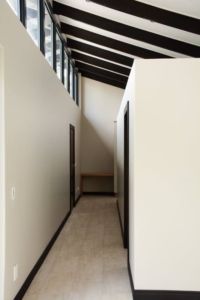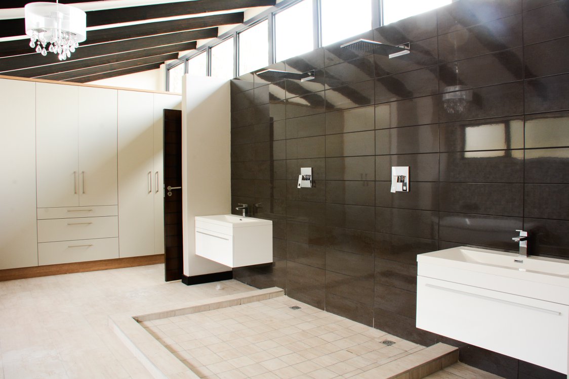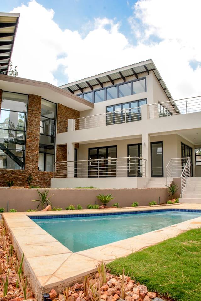 This 394m2 spec home was designed for the client who had a vested interest in the design of the home. Their brief was to take full advantage of the western view through the pine trees of the driving range. The entrance from the street was from the east so the main living space with main bedroom suite above, was located on the southern side of the site allowing for the easy flow from garages into pantry & living space; as well as opening the living space with patios onto the courtyard to its north. The splayed northern bedroom wing consisted of the golf cart garage and guest suite on the ground floor and 2 bedrooms with bathroom upstairs. The two splayed wings of the house are connected by an open double volume entrance hall with a suspended bridge between main bedroom & kids bedrooms. Located in the center of the west facing courtyard, off from the living space with patios is the swimming pool and garden.