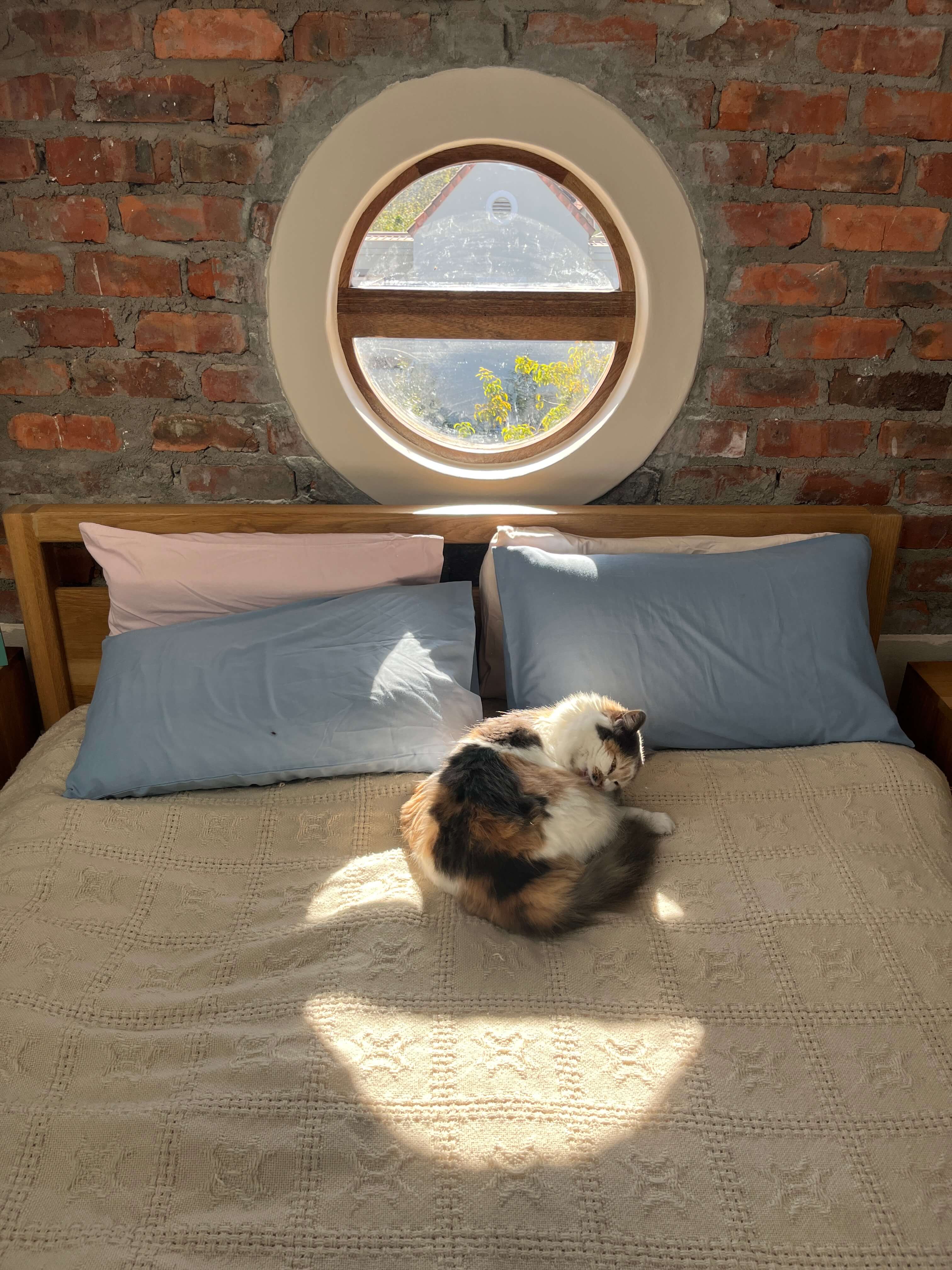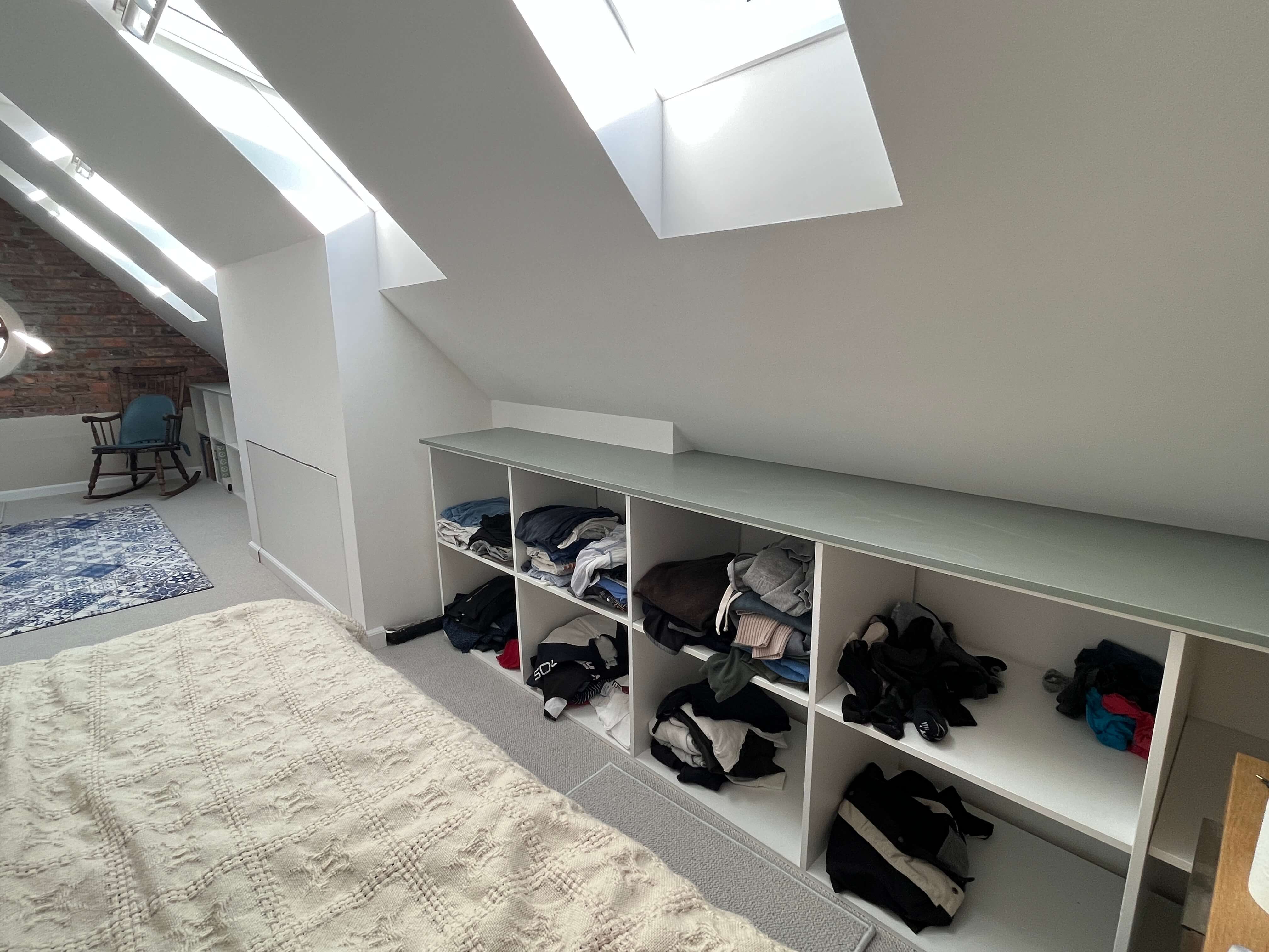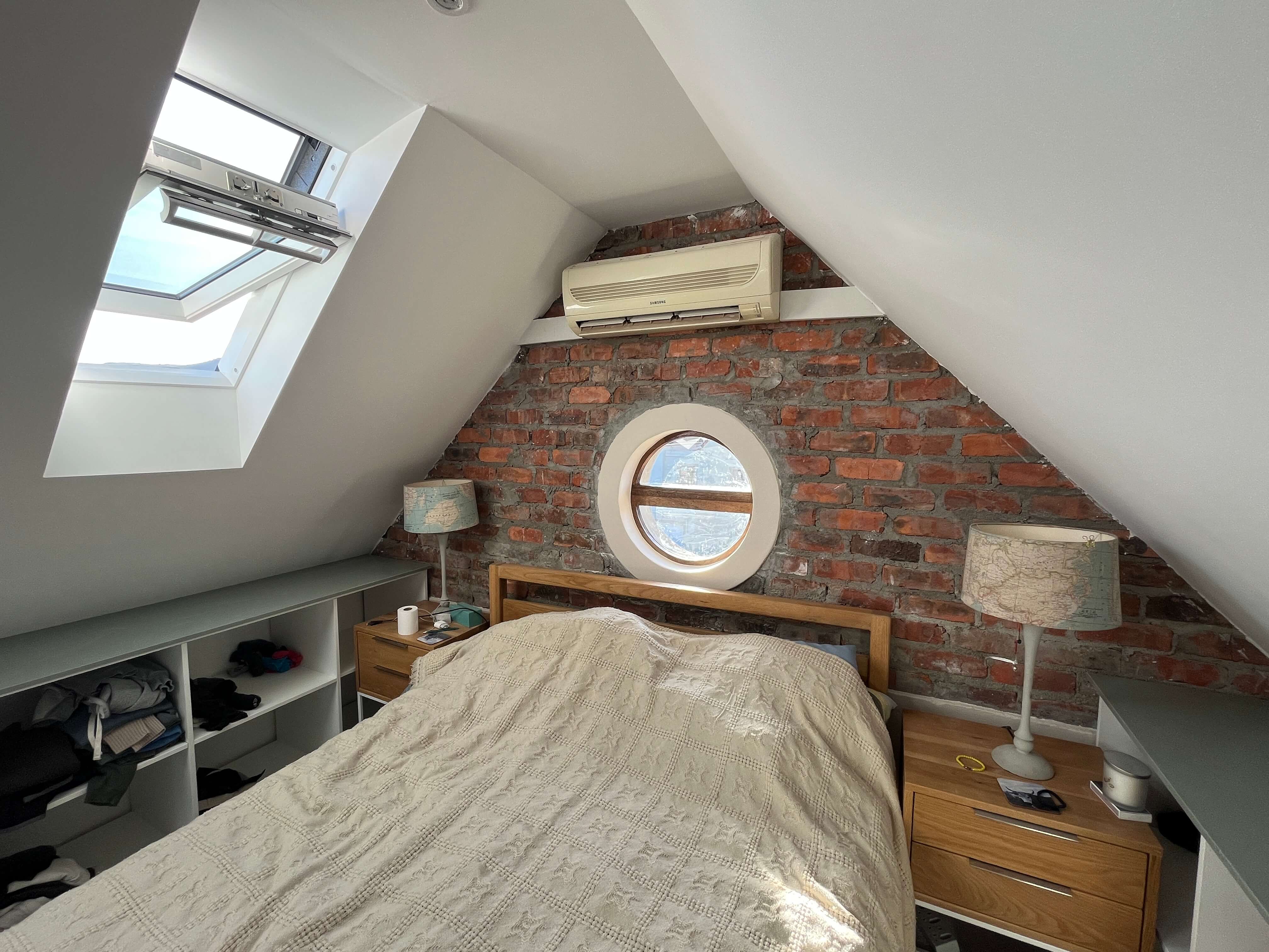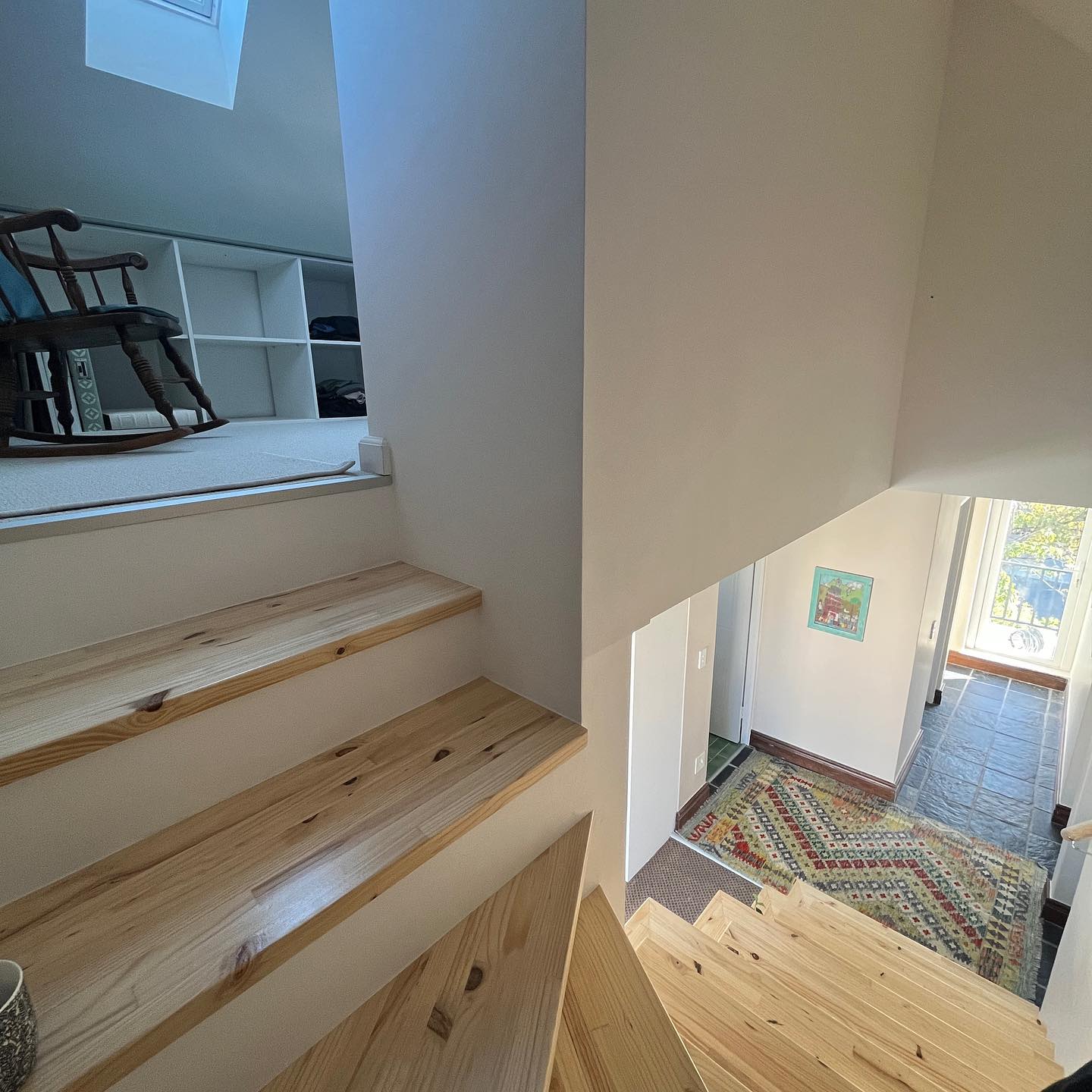 There is something quite special about transforming an unused and forgotten space into something useful. The former ceiling void has been transmuted into a warm and light bedroom loft – high above the sounds of traffic, and closer to the clouds that brush Paarl rock. The imported Velux skylights are double-glazed to make sure the room remains temperate with the golden West-facing sunsets. The skylights also pivot to allow warm air to circulate and escape, thus offering seasonal benefits. The rustic portal windows offer charming peephole views of the mesmerising Cape Winelands.